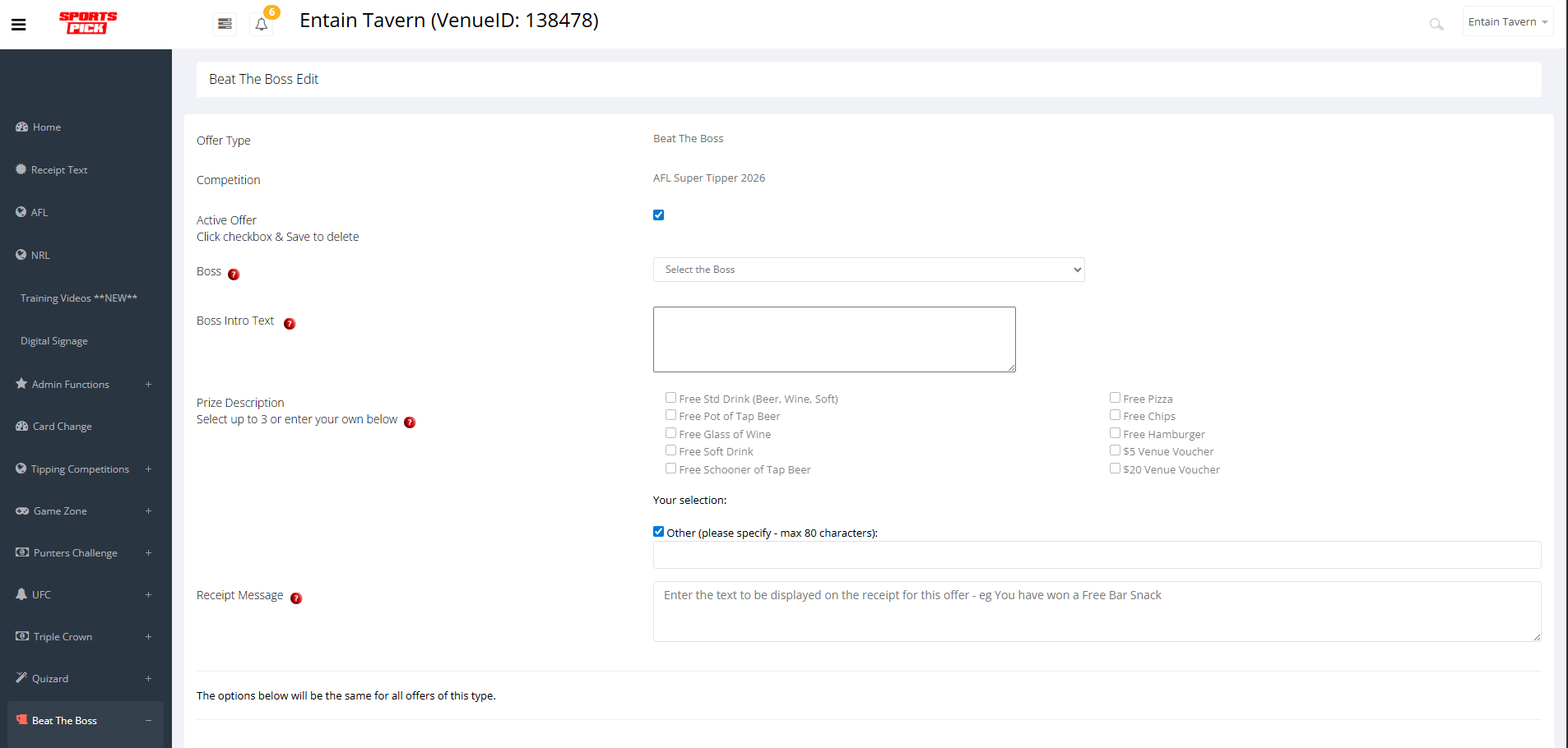 This section covers setting up the "Beat the Boss" offer, where members take on a venue's boss, and receives a prize for out-scoring the Boss in a Round.