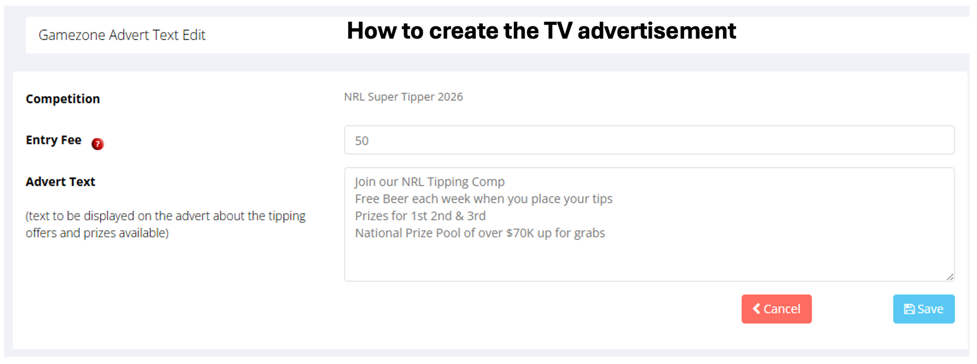- Choose the competition you would like this offer to apply to e.g. NRL Super Tipper 2026. Make sure you choose the correct year